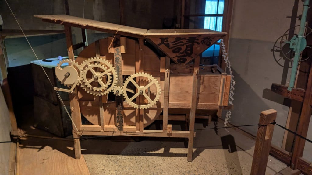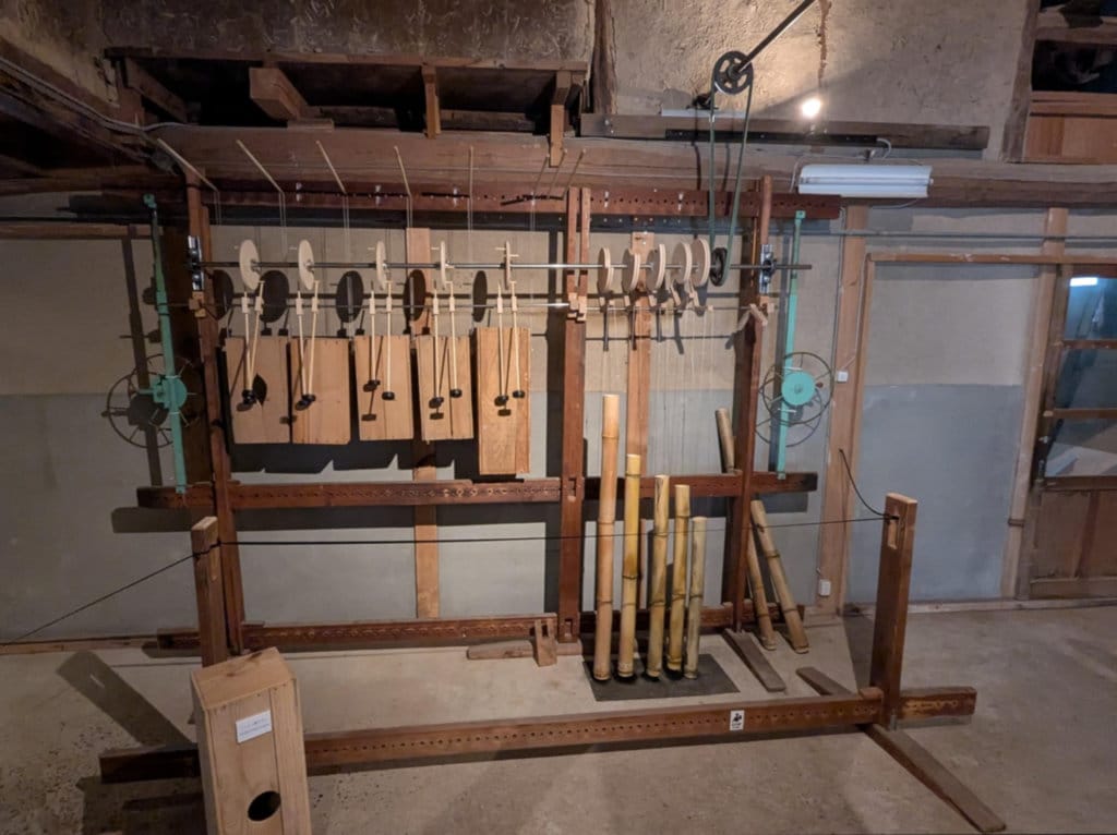 The interior of the building was full of improbable musical instruments made from all sorts of rural tools, some very old and some not that old (for example the somen-making machines).